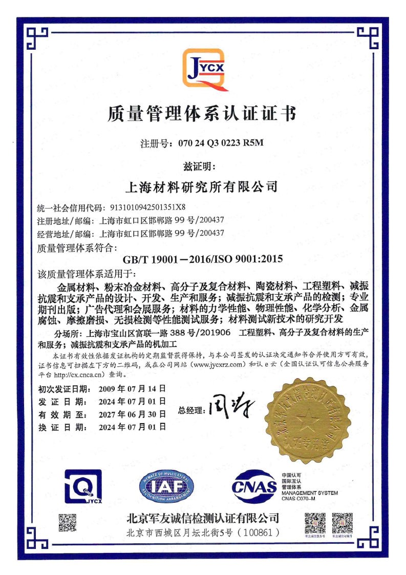 betway体育平台APP About Our Institute 本所概况 历史沿革 组织架构 企业文化 资质荣誉 所区分布 联系我们 质量管理体系认证证书(中文)-2027.6 质量管理体系认证证书(英文)-2027.6 知识产权管理体系认证证书-2026.7 高新技术企业证书- 2026.12 2022-2023年度合同信用等级认定证书-2026.6 2022-2023年度上海市守合同重信用企业证书-2026.6 国家科学技术进步奖二等奖-2010.11 上海市科技进步奖特等奖-2019.1 上海市科技进步奖一等奖-2020.4 上海市科技进步奖二等奖-2020.12 上海产学研合作优秀项目奖特等奖-2020.12 上海产学研合作优秀项目奖一等奖-2021.11 机械工业科技技术奖二等奖-2022.10 湖南省科学技术进步奖一等奖-2024.7 广东省科学技术奖一等奖-2014.4 上海市标准化创新贡献奖-2022.10 中国造船工程学会科技进步奖一等奖-2024.12 石化联合会科技进步一等奖-2024.12 虹口区重点科创及高成长企业-2025.1